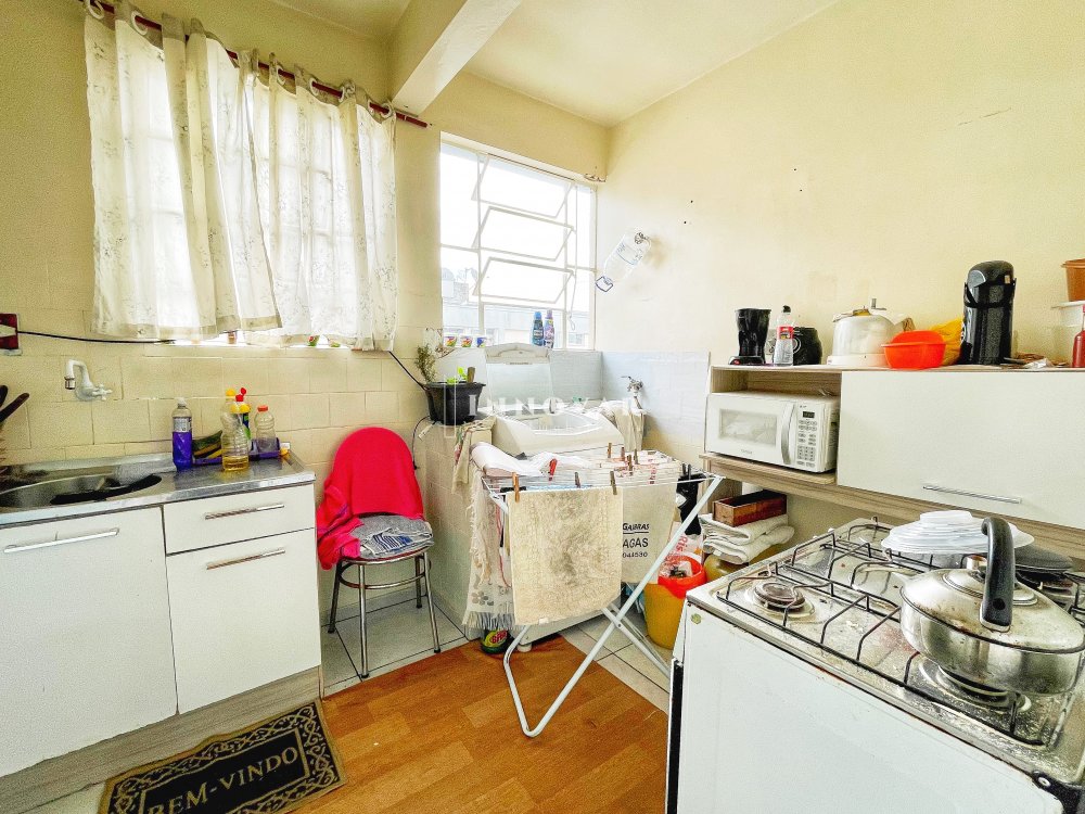 O Apartamento possui uma vaga, um quarto, uma sala e uma cozinha.