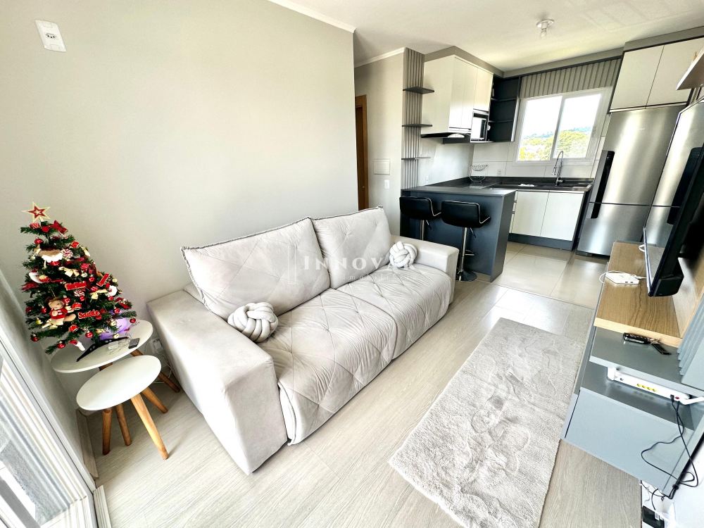 Sacada com churrasqueira, vaga de estacionamento, 2 dormitórios e área de serviço. Piso laminado nas áreas quentes, porcelanato classe A na cozinha. Ideal para você que deseja um ambiente calmo, próximo a 2 escolas, mercado, banco, posto de gasolina, em frente a UBS e até um CTG.
